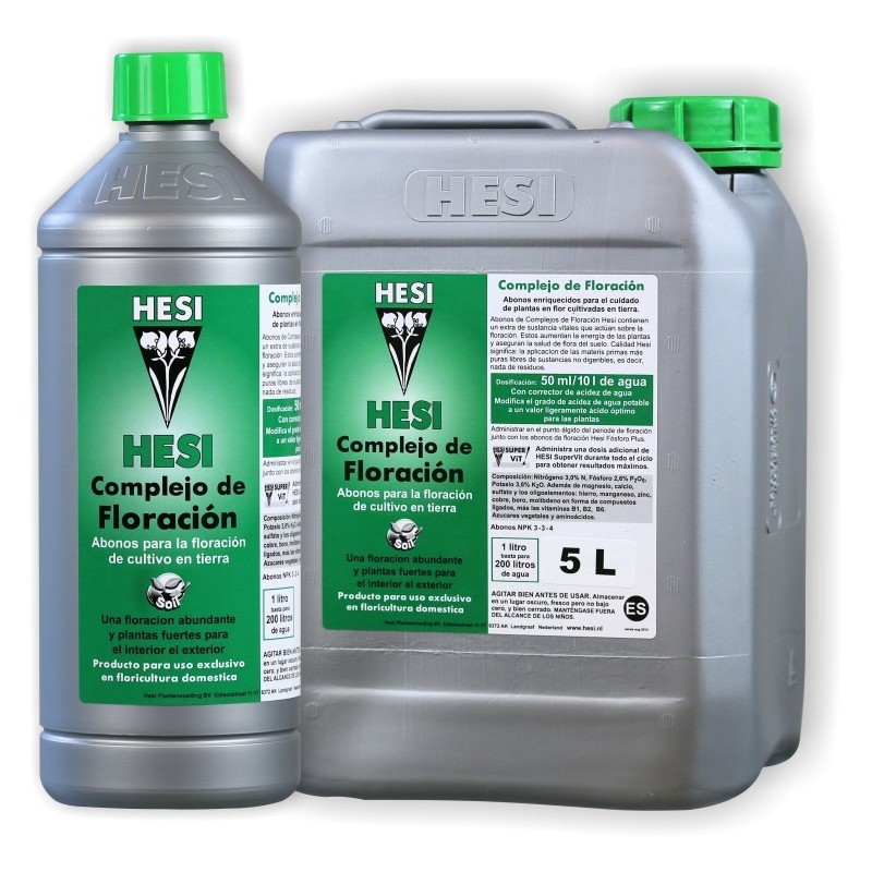 HESI Bloom Complex proporciona todas las sustancias necesarias a las plantas con flores para sus necesidades adicionales durante la floración. Además de la nutrición (nitrógeno, fósforo, potasio, magnesio, calcio, oligoelementos, etc.), HESI Bloom Complex también se ha enriquecido con componentes vitales (aminoácidos y vitaminas) que estimulan el desarrollo de la planta de manera óptima. ¡El resultado de esto es una exuberante floración! Además, HESI Bloom Complex contiene un corrector de pH.