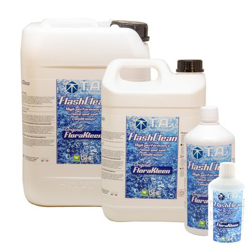 FlashClean puede ayudar en tales casos. Ha sido desarrollado específicamente para descomponer las sales fertilizantes y restaurar la microflora en el suelo. Como tal, también puede restaurar las conexiones de nutrientes entre las plantas y el sistema de cultivo. Utilice FlashClean cuando cambie la solución nutritiva en su sistema hidropónico o para eliminar los residuos de fertilizante del medio de cultivo que ha utilizado.