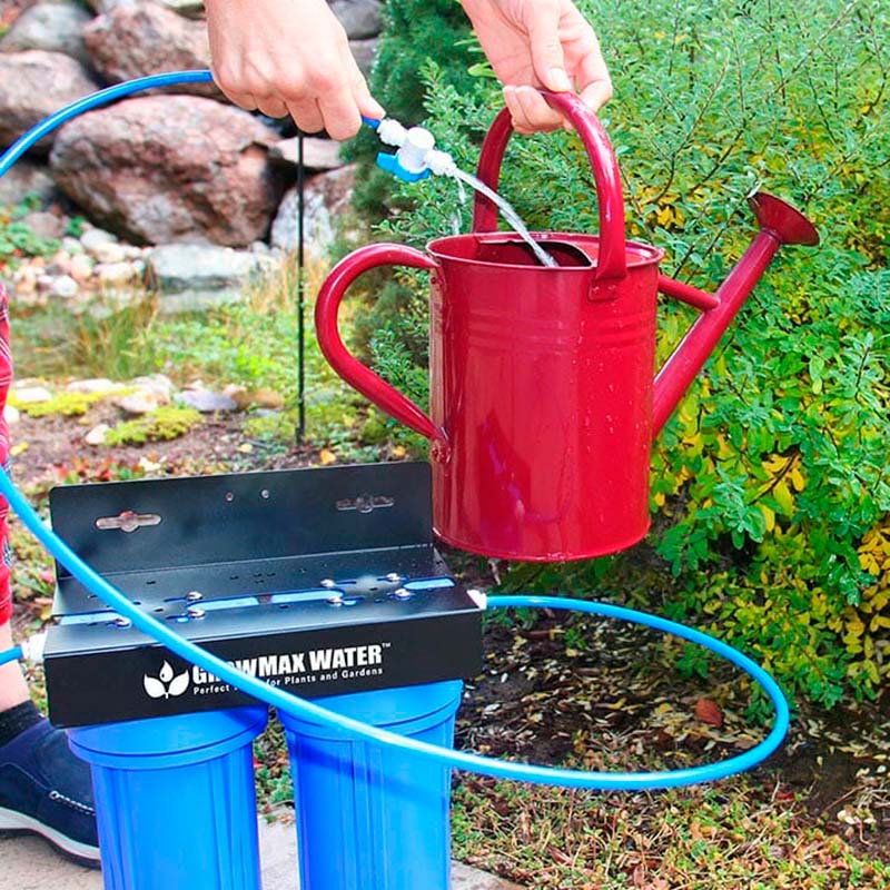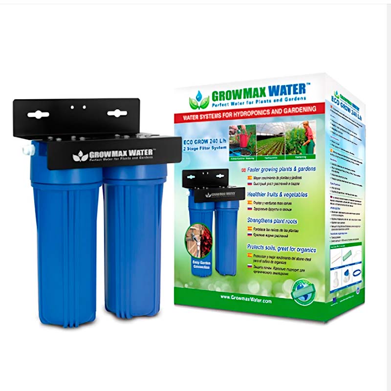 Sistema de Filtración de Agua de 2 etapas con óptimo flujo para el riego de plantas. Elimina hasta el 99% de cloro y reduce los sedimentos superiores a 5 micras, ¡Al instante!