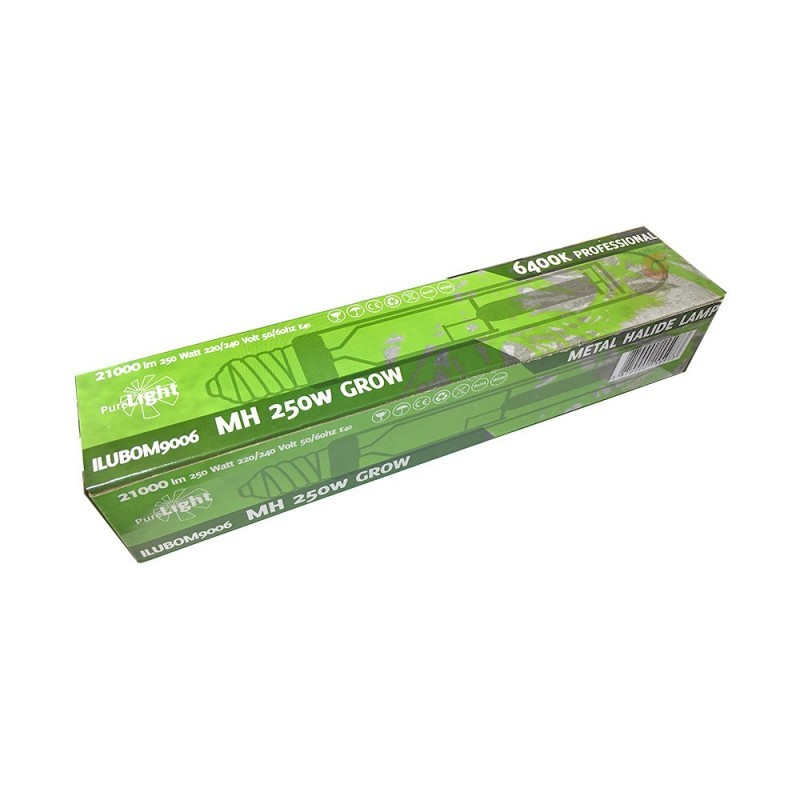 Las bombillas Pure Light MH 250W Grow son lámparas de halogenuros metálicos (MH, por sus siglas en inglés) que emiten un espectro de luz que imitan el que las plantas obtendrían durante la primavera. Gracias a esta peculiaridad, estas bombillas están especialmente recomendadas para ser usadas durante la fase vegetativa o periodo de crecimiento de nuestras plantas.