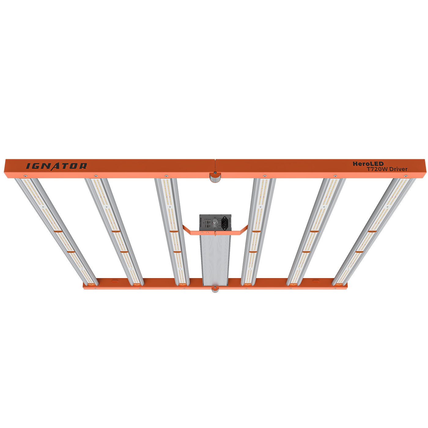 El Ignator HeroLED T720W Driver te brinda un control total sobre la intensidad de la luz: incluye una conexión para un controlador externo PWM (30%-100%) y un selector de potencia con el que podrás variar entre 720W, 630W, 500W, 360W o apagarlo según necesites. Además, su tecnología Full Spectrum proporciona 1950 PPF con una eficacia de 2.7 PPE.